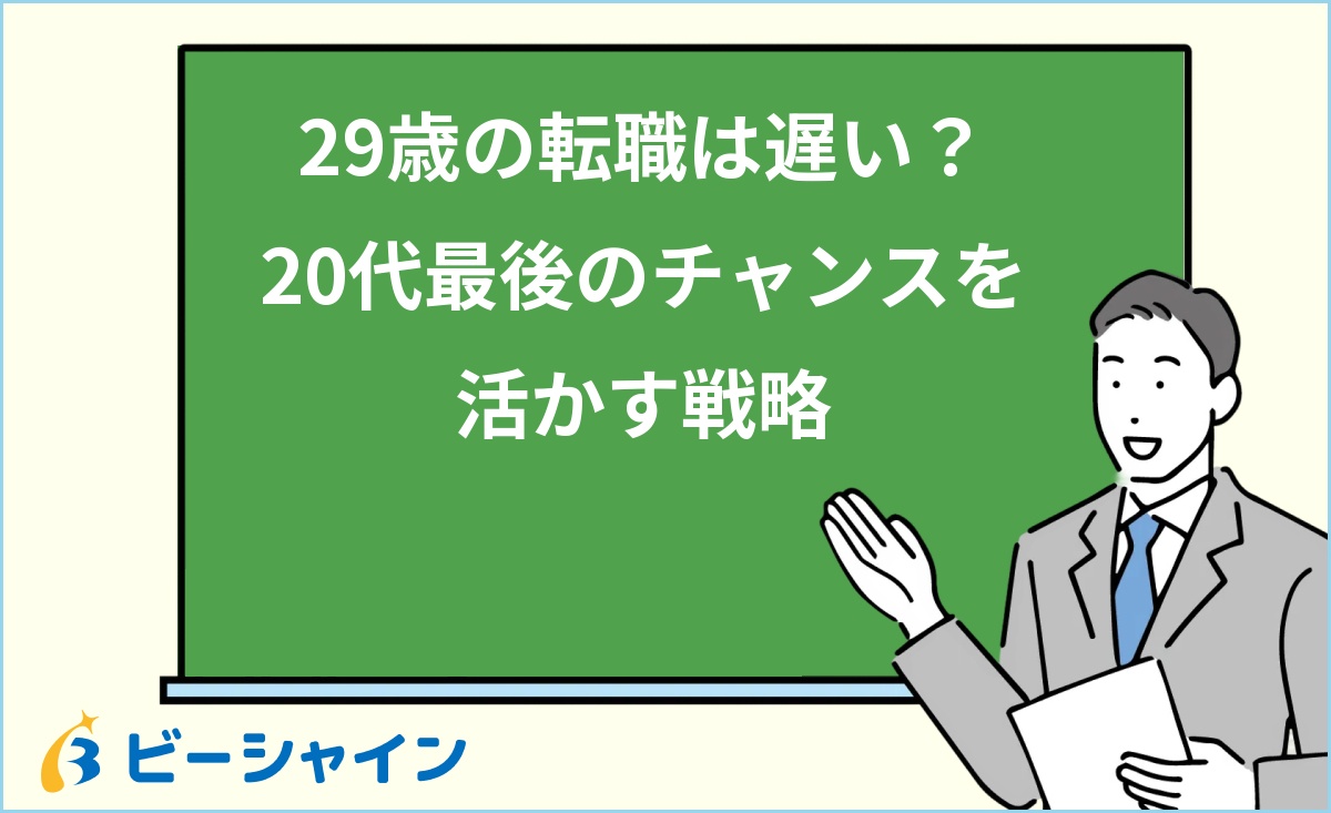 A. 遅くありません。29歳は即戦力として最も高く評価される年齢のひとつであり、「20代歓迎」の求人に応募できる最後のタイミングです。転職を考えているなら、30歳を迎える前に行動を起こすことを強くおすすめします。